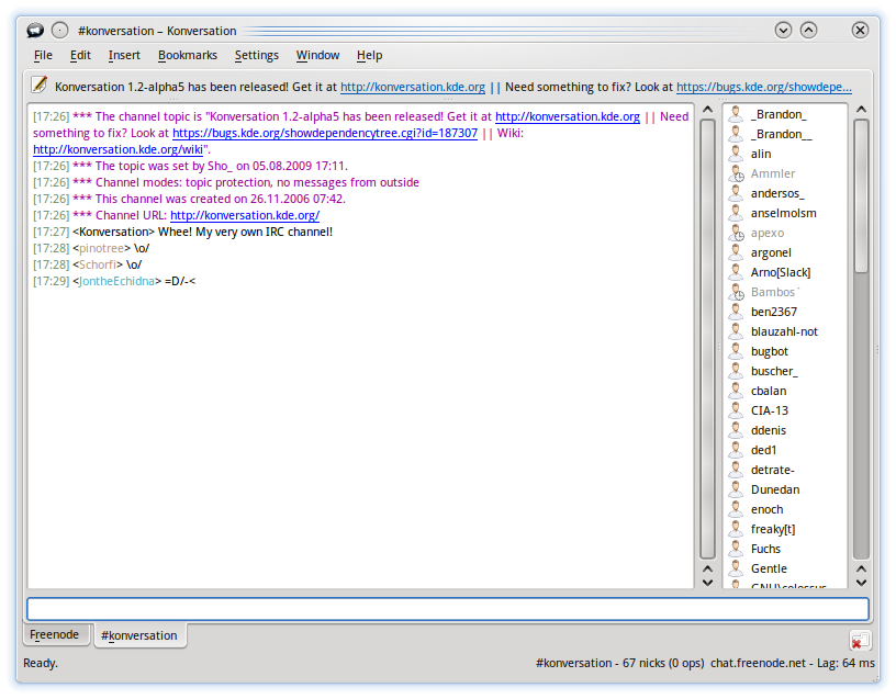 The Konversation IRC client – a “user-friendly Internet Relay Chat (IRC) client built on the KDE Platform” – has been updated to version 1.2.3.