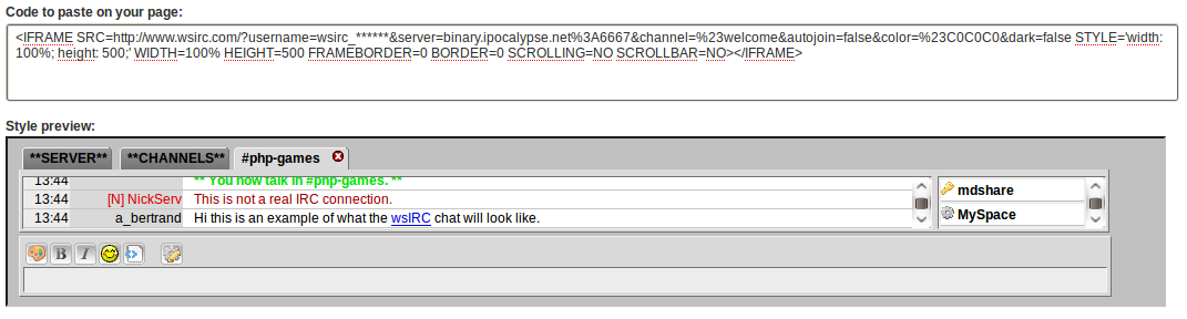 Embedding the client into your own website is allowed and encouraged – there’s a simple tool that lets you create an IFrame or direct link with the options you chose which you then may embed into your site – great for providing your visitors a simple option to engage in your community.