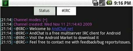 AndChat (previously known as AndroidIRC), a free and powerful IRC client for the Android platform, has been updated and is now available at version 1.2.8.