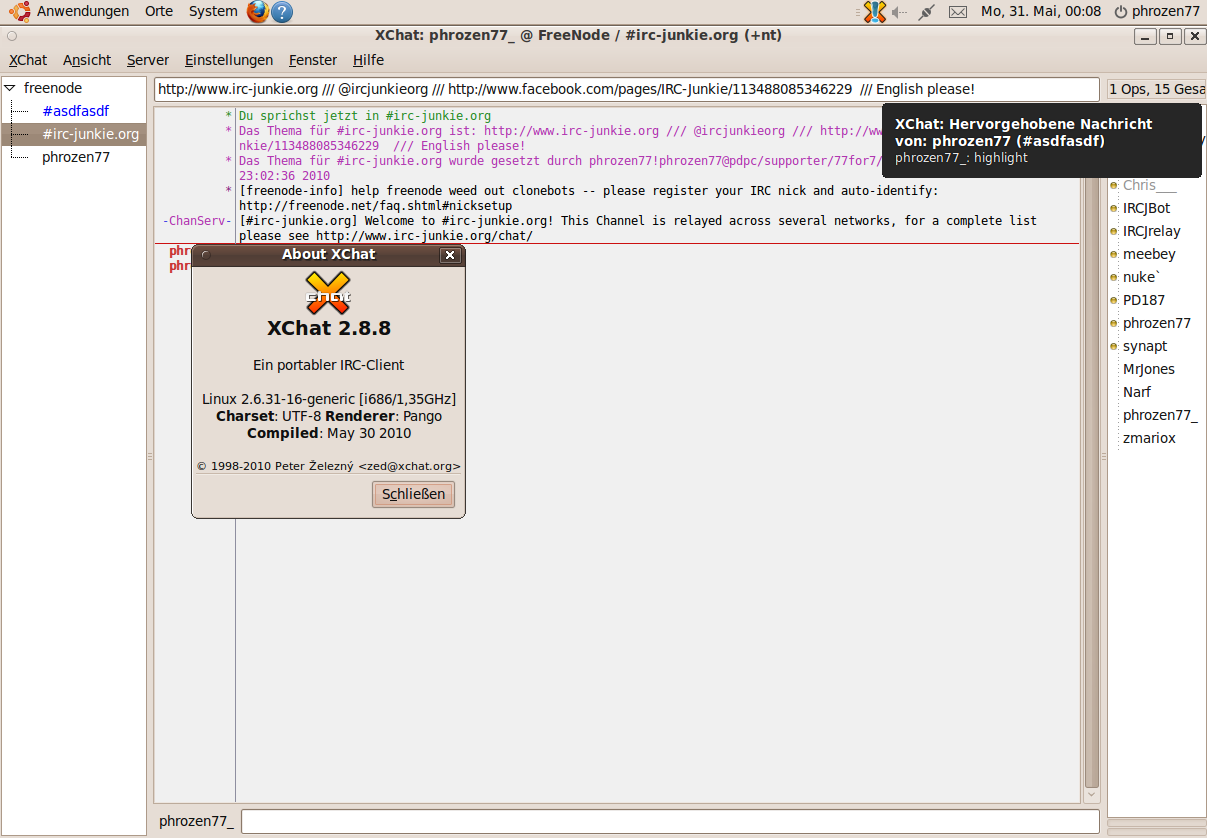 XChat 2.8.8 adds a whole host of bugfixes and stability improvements to the already pretty stable IRC client. Users of the freenode IRC network may find a particular bugfix that works around a problem with auto-joining keyed channels on ircd-seven interesting.